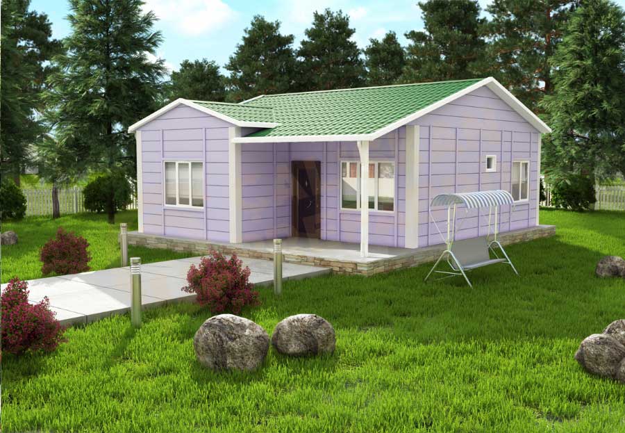 Özellikle kentin biraz uzağında kalarak yaşamını sürdürmek isteyenler için ideal olan bu tek katlı prefabrik ev, güvenli ve rahat taşınabilirliği sayesinde istediğiniz konuma yerleştirilebilir.